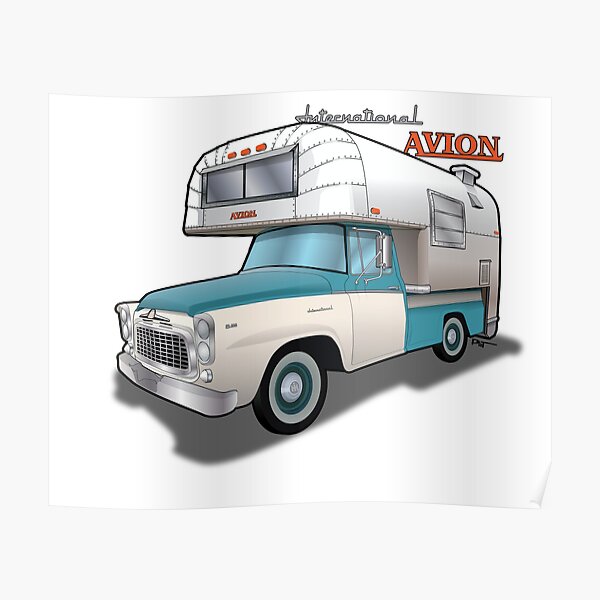1960 Avion Camper And International Truck Poster By Patartbykevin Redbubble