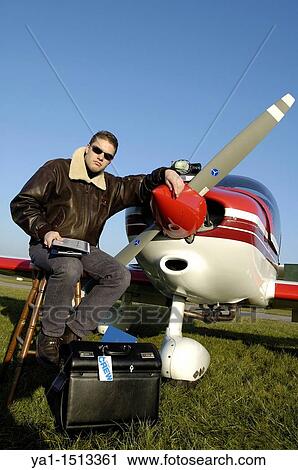 Vecteur Premium Pilote En Uniforme Debout Devant L Avion