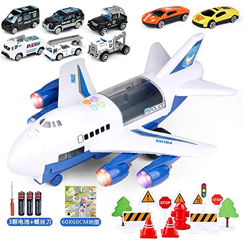 Shanna Juego Aviones Vehiculos Juego Juguetes Educativos Vehiculos Con Ruedas Inercia 1 Avion Grande 4 Autos Aleacion Para Ninos Mayores 3 Anos Coche Policia Azul Amazon Es Juguetes Y Juegos