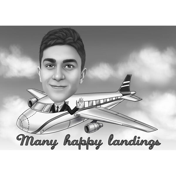Caricature De Pilote D 39 Avion Dans Un Style Noir Et Blanc