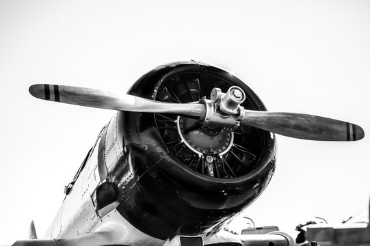 Poster Aviation Photo Noir Et Blanc D Un Moteur D Avion A Helice