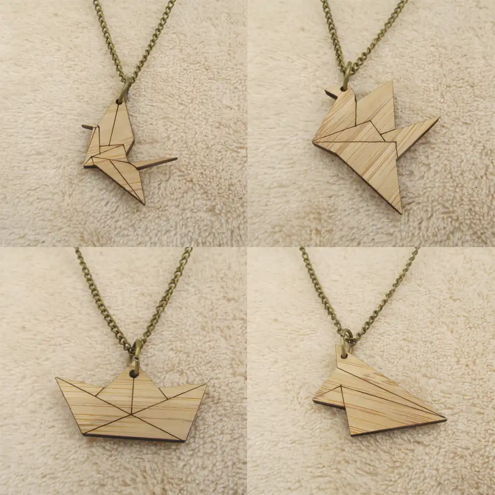 Collar De Cadena De Madera De Grua De Avion De Papel De Origami Colgante Con Envio Joyeria Grafica De Madera De Bambu Accesorio Nautico Colgantes Aliexpress