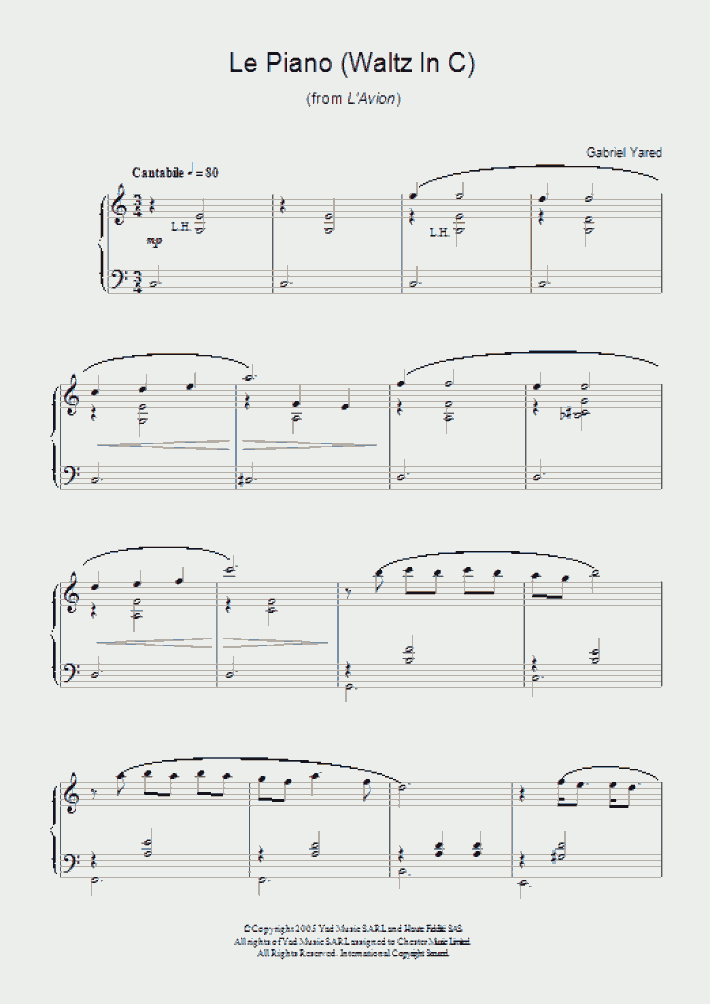 Gabriel Yared Le Piano Waltz In C From L Avion Sheet Music Download Pdf Score 43678