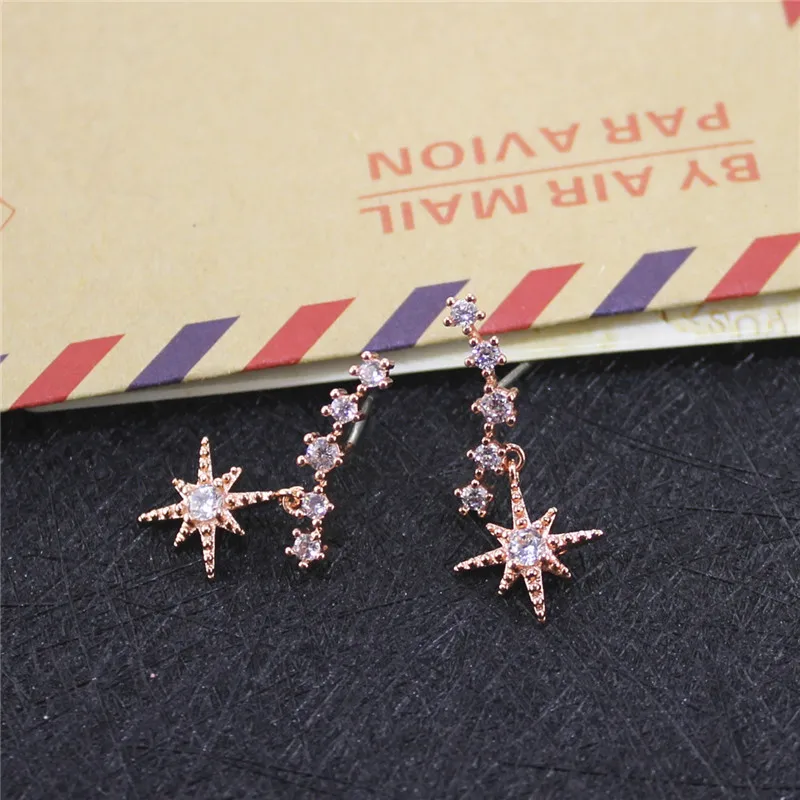 Xq Rose Gold Color Stars Pendant Curved Woman Stud Earrings Fashion Korean Style Girl Holiday Gift Accessories Charms Jewelry Stud Earrings Aliexpress