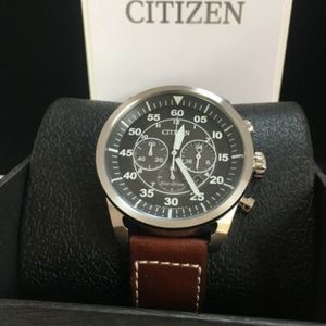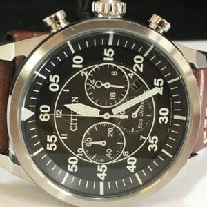 Citizen Eco Drive Ca4213 18l Men S 45mm Case Blue Dial Brown Leather Avion Watch For Sale Online Ebay