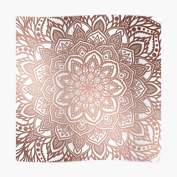 Botanical Lotus Rose Gold Poster By Halconiandesign Redbubble