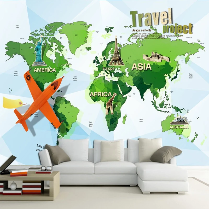 9 Beibehang De Habitacion De Los Ninos De La Pared 3d Papel De Dibujos Animados Avion De Navegacion De Mapa Mundo Pared Murales 3d Papel Pintado Jykaone31