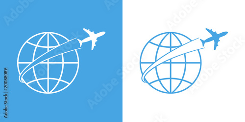 Icono Plano Avion Alrededor Del Mundo En Azul Y Blanco Buy This Stock Vector And Explore Similar Vectors At Adobe Stock Adobe Stock