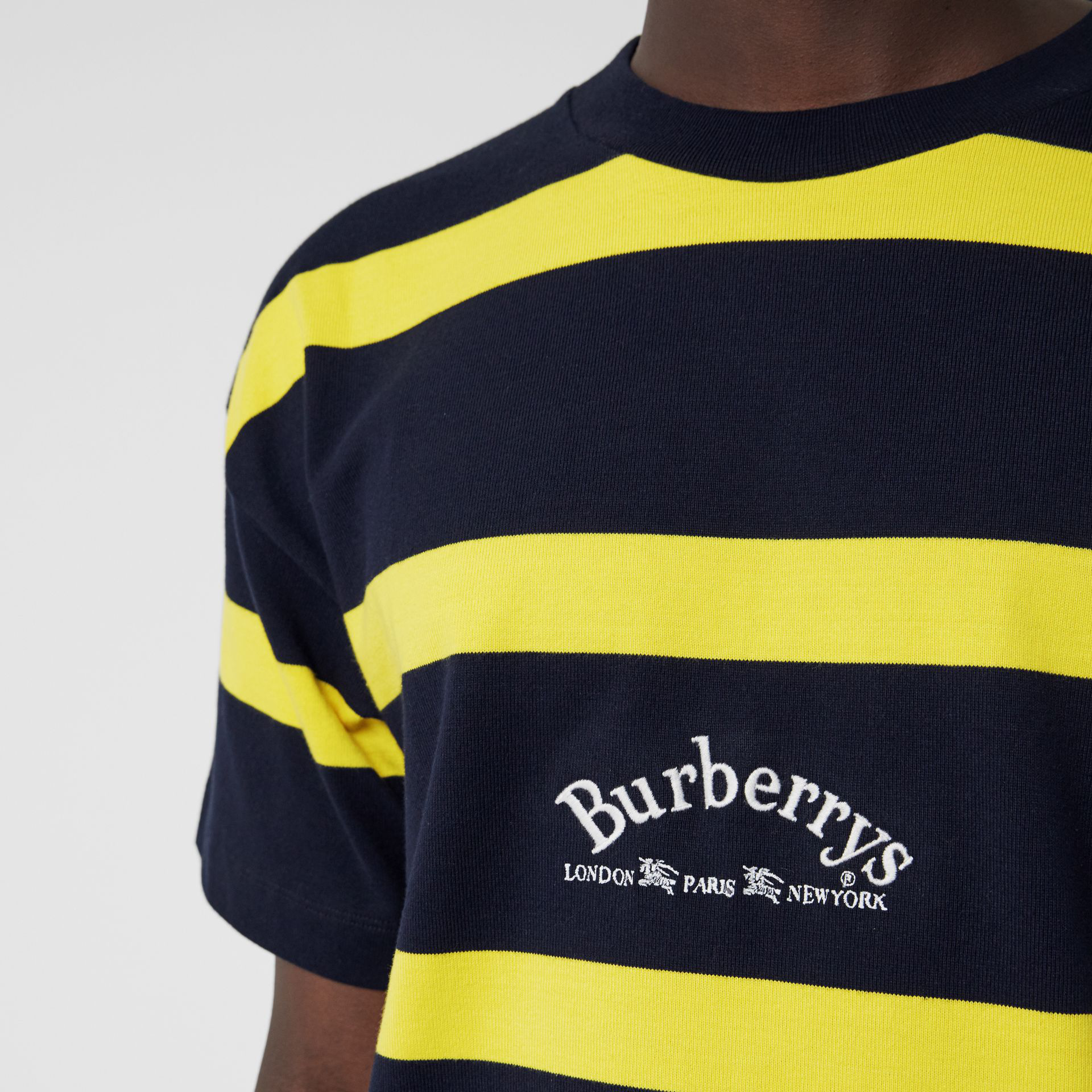 Burberry Embroidered Archive Logo Striped Cotton T Shirt In Blue Modesens