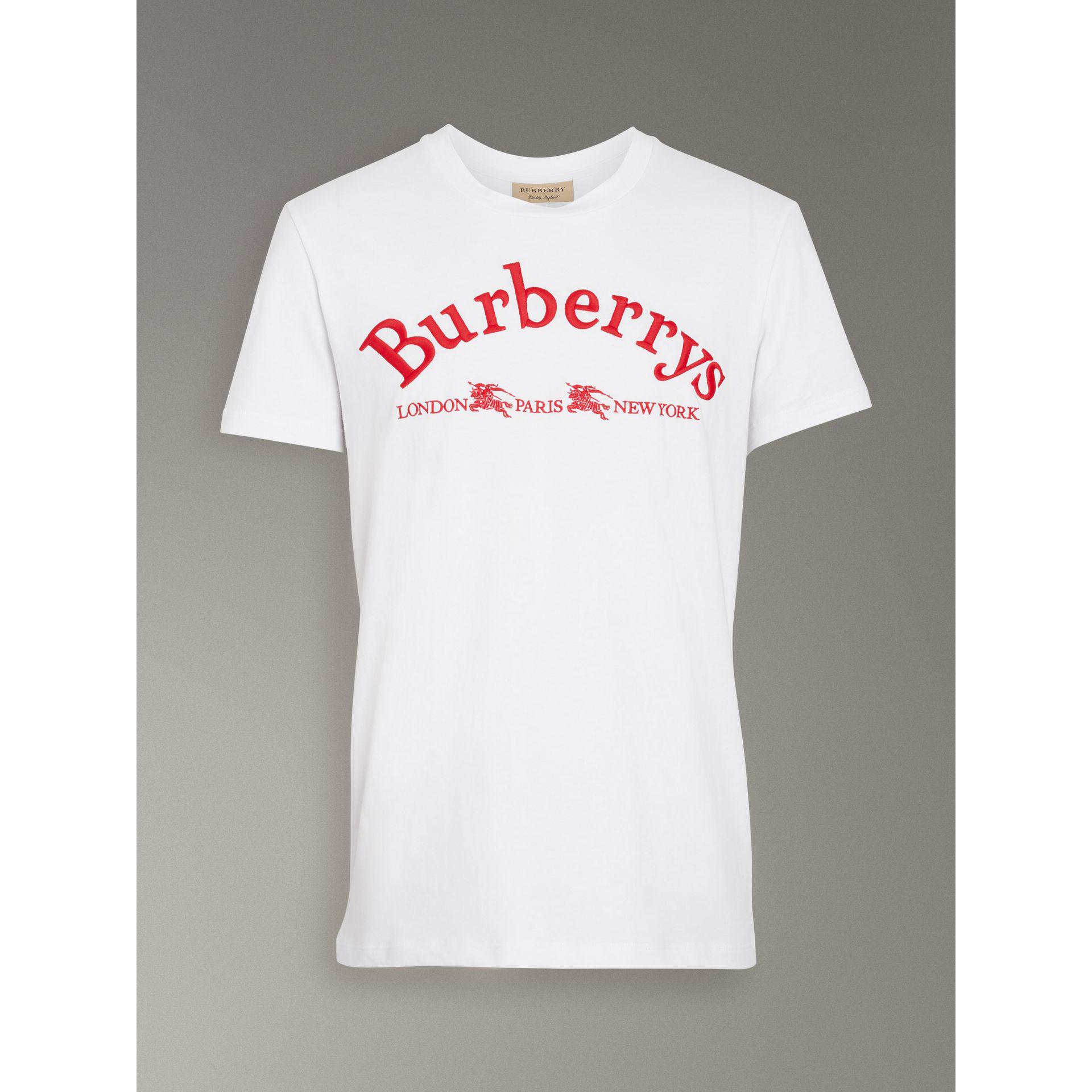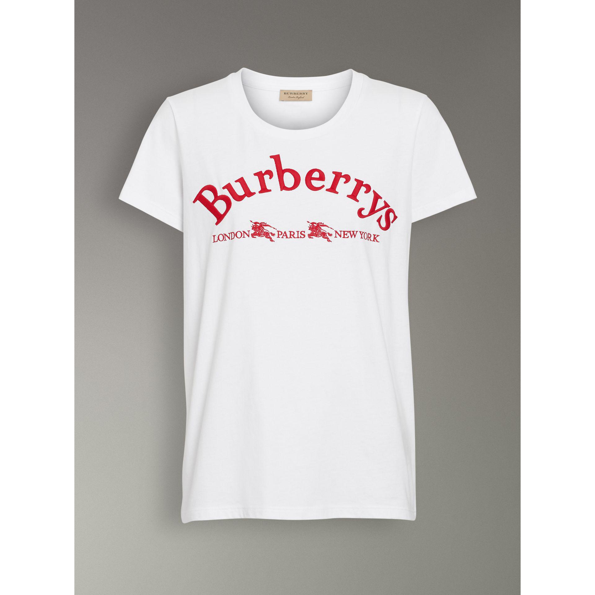Burberry Embroidered Archive Logo Cotton T Shirt In White Lyst