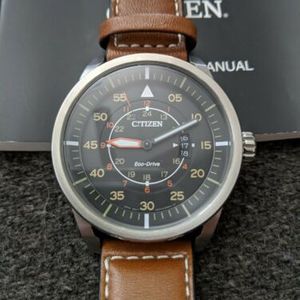 Citizen Avion Aw1361 10h Eco Drive Watch Brown Leather Band Wristwatch Men Eco Drive