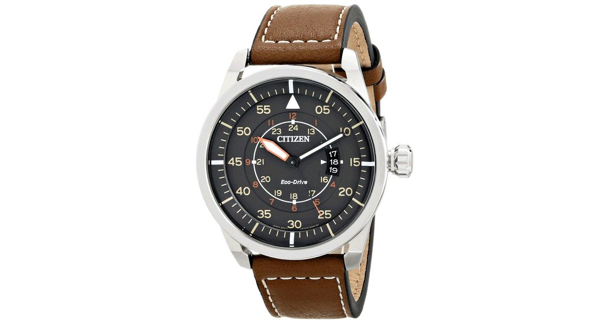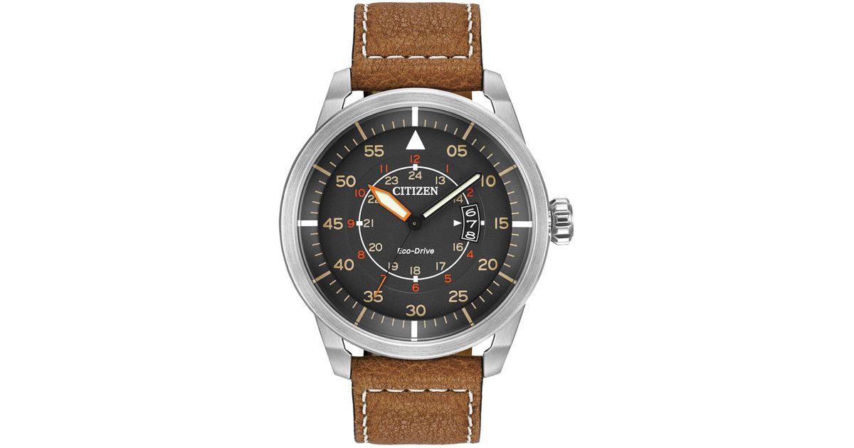 Citizen Mens Eco Drive Avion Watch With Brown Leather Strap In Black For Men Lyst