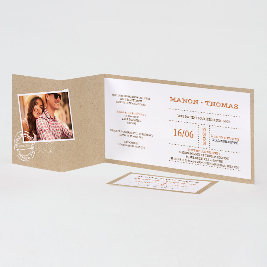 Faire Part Mariage Passeport Billet Avion Chic Kraft Dorure Belarto 620017