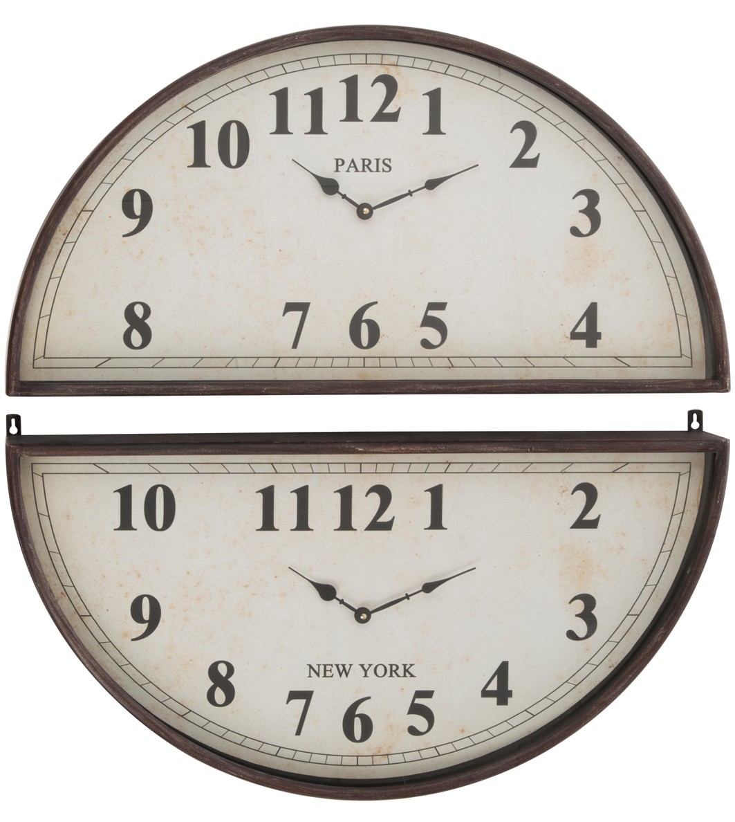 Horloge Murale 2 Parties Forme Demi Lune Paris Et New York Grand Diametre D74cm Style Vintage En Fer Et Verre Coloris Marron Horloges Pier Import