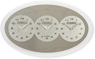 Amazon Com Incantesimo Wall Clock Three Ore Nel Mondo Tokyo New York Paris High Density Clear Glass White Grey Silver 45 X 28 X 3 Cm Kitchen Dining