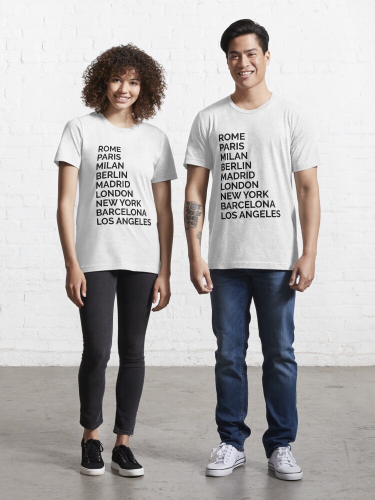 Top Fashion Cities Rome Paris Milan Berlin Madrid London New York Barcelona Los Angeles T Shirt By Marzzgraphics Redbubble