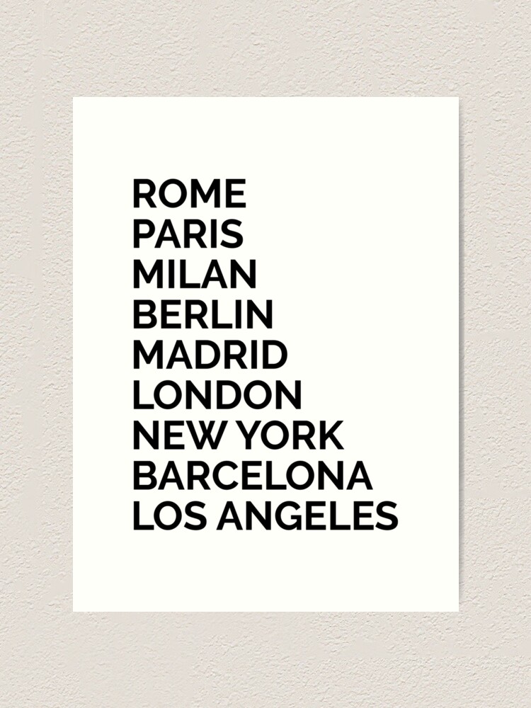 Top Fashion Cities Rome Paris Milan Berlin Madrid London New York Barcelona Los Angeles Art Print By Marzzgraphics Redbubble