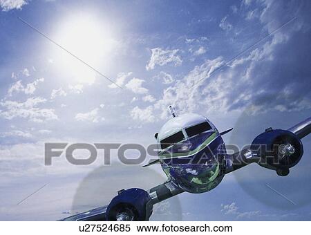 Front Vue De Moteur Jumeau Avion Helice Banques De Photographies U27524685 Fotosearch