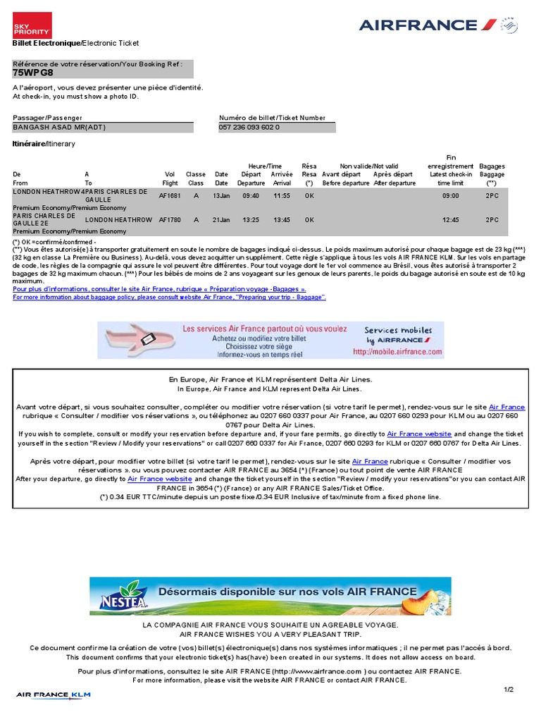 Votre Avis Sur Infos De Mon Billet Air France Forum Avion Routard Com