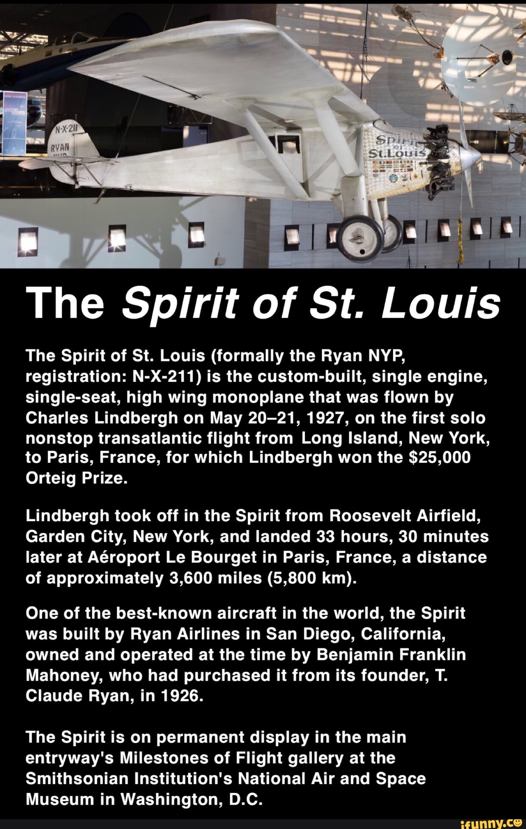 The Spmt Of St Laws The Spirit Of St Louis Formally The Ryan Nyp Registration N X 211 Is The Custom Built Single Engine Single Seat High Wing Monoplane That Was Flown By Charles