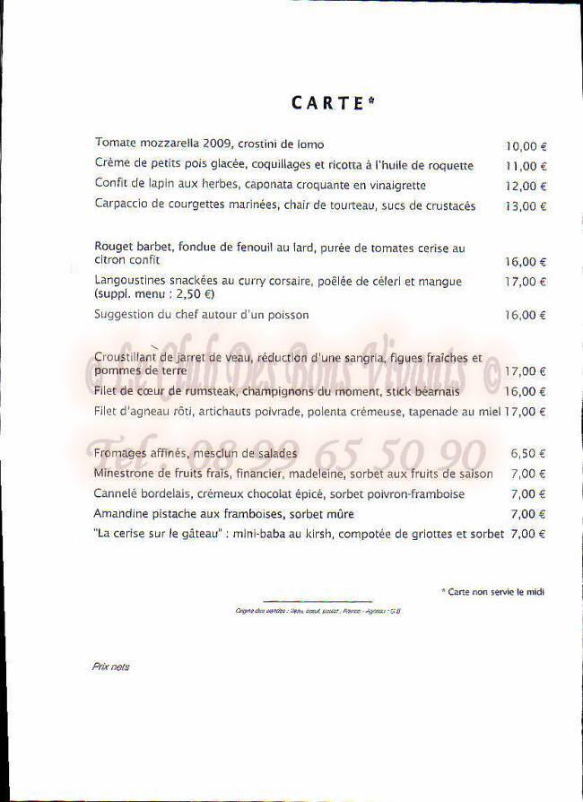 Notre Menu Du Soir Diner A Rennes Restaurant Paris New York