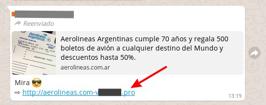 Raul Batista On Twitter Cuidado Phishing Mensaje Falso Que Llega Por Whatsapp Aerolineas Argentinas Cumple 70 Anos Y Regala 500 Boletos De Avion A Cualquier Destino Del Mundo Y Descuentos Hasta 50
