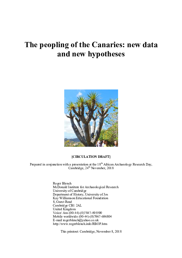 Pdf The Peopling Of The Canaries New Data And New Hypotheses Roger Blench Academia Edu