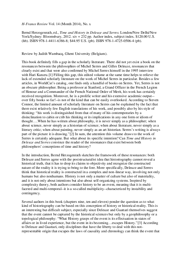 Pdf On Bernd Herzogenrath S Time And History In Deleuze And Serres Pdf Judith Wambacq Academia Edu