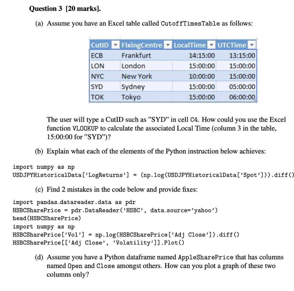 Question 3 20 Marks A Assume You Have An Exce Chegg Com